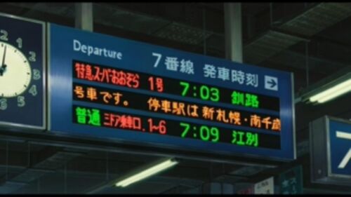 映画『思い出のマーニー』舞台探訪(聖地巡礼)@北海道札幌市 JR札幌駅構内 7番線ホーム 【JR札幌駅 7番線ホーム】 札幌から舞台が道東方面に移る際のカット。スーパーおおぞらに乗って東を目指していましたね。